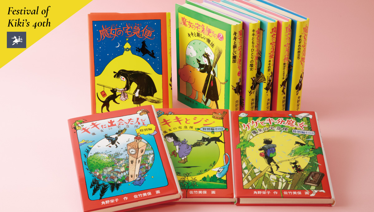 初版1985年より。魔女の宅急便シリーズ全6巻(《1巻/林 明子、2巻/ 広野 多珂子 、3巻〜/佐竹 美保》・絵)と特別編3巻(佐竹 美保・絵)全て福音館書店