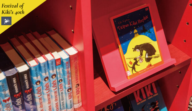 魔法の文学館2階「栄子さんのアトリエ」コーナーにある栄子さんのコーディネートが『魔女の宅急便』の世界観を表現した装いに大変身します!アトリエ書斎にあるガラスケースでも『魔女の宅急便』の主人公キキにまつわる小物や、栄子さんが読んだ“魔女”や“魔法”の本など、『魔女の宅急便』の世界をたくさんご紹介します。