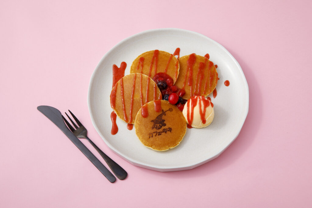 魔法の文学館3階「カフェ・キキ」に『魔女の宅急便』のキキにちなんだ「キキのパンケーキ」が登場しました!カフェ・キキのロゴが入ったパンケーキは、ベリーソースがアクセント!1日の数量限定、第4回企画展「ここ、コリコ」会期中の限定販売です!