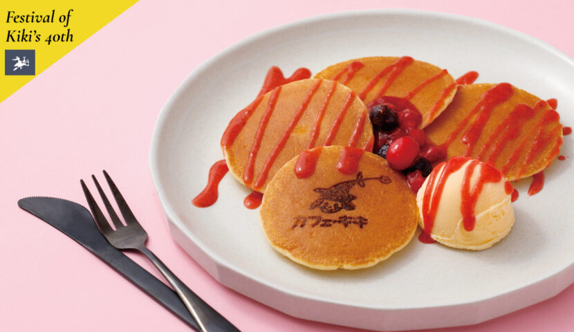 魔法の文学館3階「カフェ・キキ」に『魔女の宅急便』のキキにちなんだ「キキのパンケーキ」が登場しました!カフェ・キキのロゴが入ったパンケーキは、ベリーソースがアクセント!1日の数量限定、第4回企画展「ここ、コリコ」会期中の限定販売です!